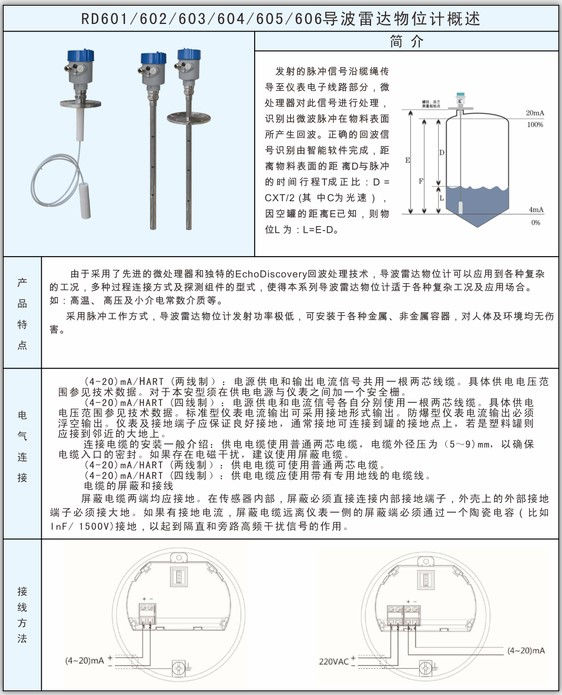 采用脈沖工作方式,導(dǎo)波雷達(dá)物位計(jì)發(fā)射功率極低,可安裝于各種金屬、非金屬容器,對(duì)人體及環(huán)境均無傷害。