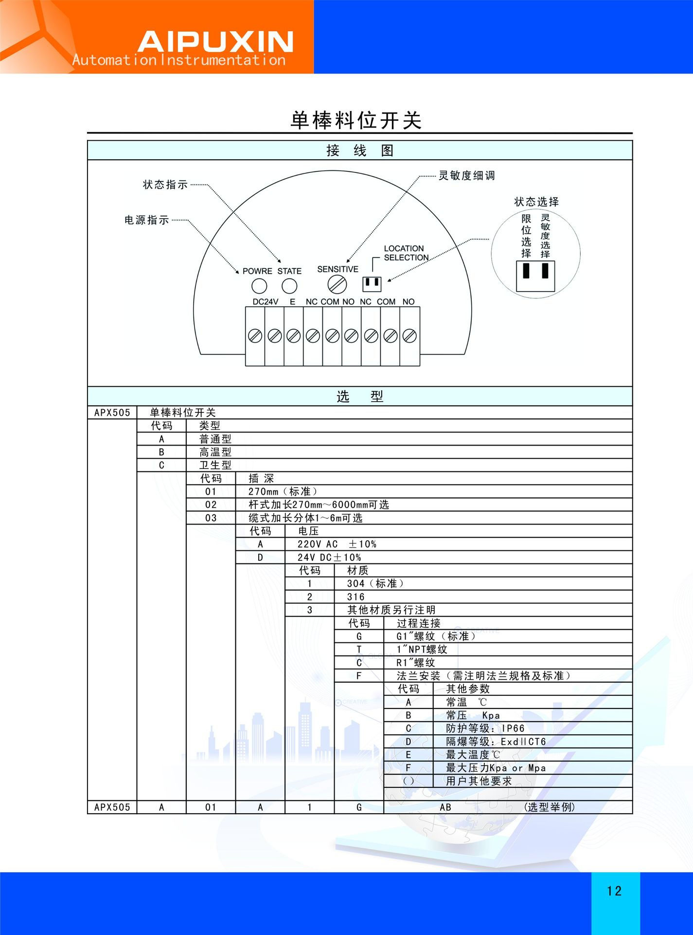 標準型單棒料位開關(guān)APX505 遼寧專業(yè)儀器儀表生產(chǎn)廠家