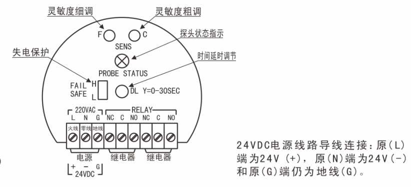 B).直流電源類(24VD.C)24VD.C電源線路導線連接:原(L)端為-24V(+),原(N)端為公共端(-)和原(G)端仍為地線(G)。注意:必須良好接地