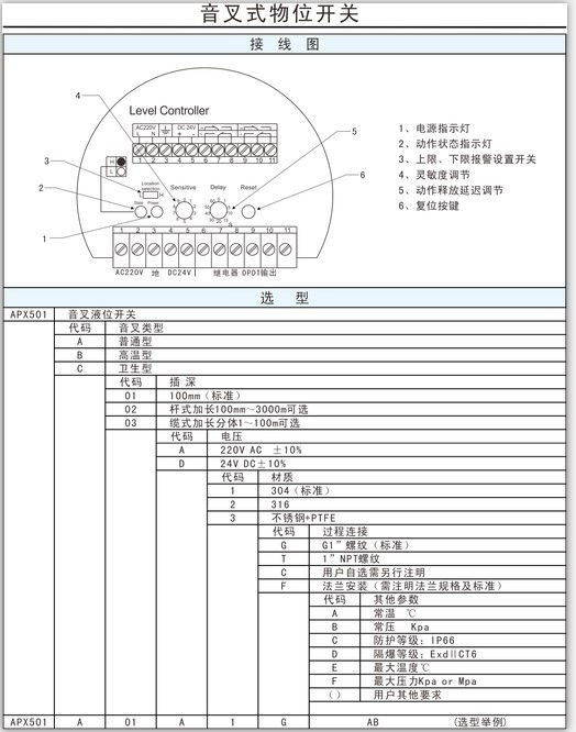 防腐型音叉物位開關是通過壓電晶體的諧振來引起其振動的,當受到物料阻尼作用時,振幅急劇降低且頻率和相位發(fā)生明顯變化,這些變化會被內部電子電路檢測到,經過處理后,轉換成開關信號輸出。該產品可以對料罐的高低位進行檢測、控制和報警,適用于各種液體、粉末、顆粒狀固體。它實用簡單、運行可靠、適用性強基本上是免維護的、音叉和輸出均有工作狀態(tài),均用發(fā)光二極管指示,可依據習慣調整狀態(tài)指示,并配有三種輸入方式(直流24V、交流110V和交流220V)和多種輸出方式(直流電流輸出型、繼電器接點輸出型、直流電壓輸出型)。所有類型均有高或低故障報警模式和可選擇的儀表開關靈敏度。