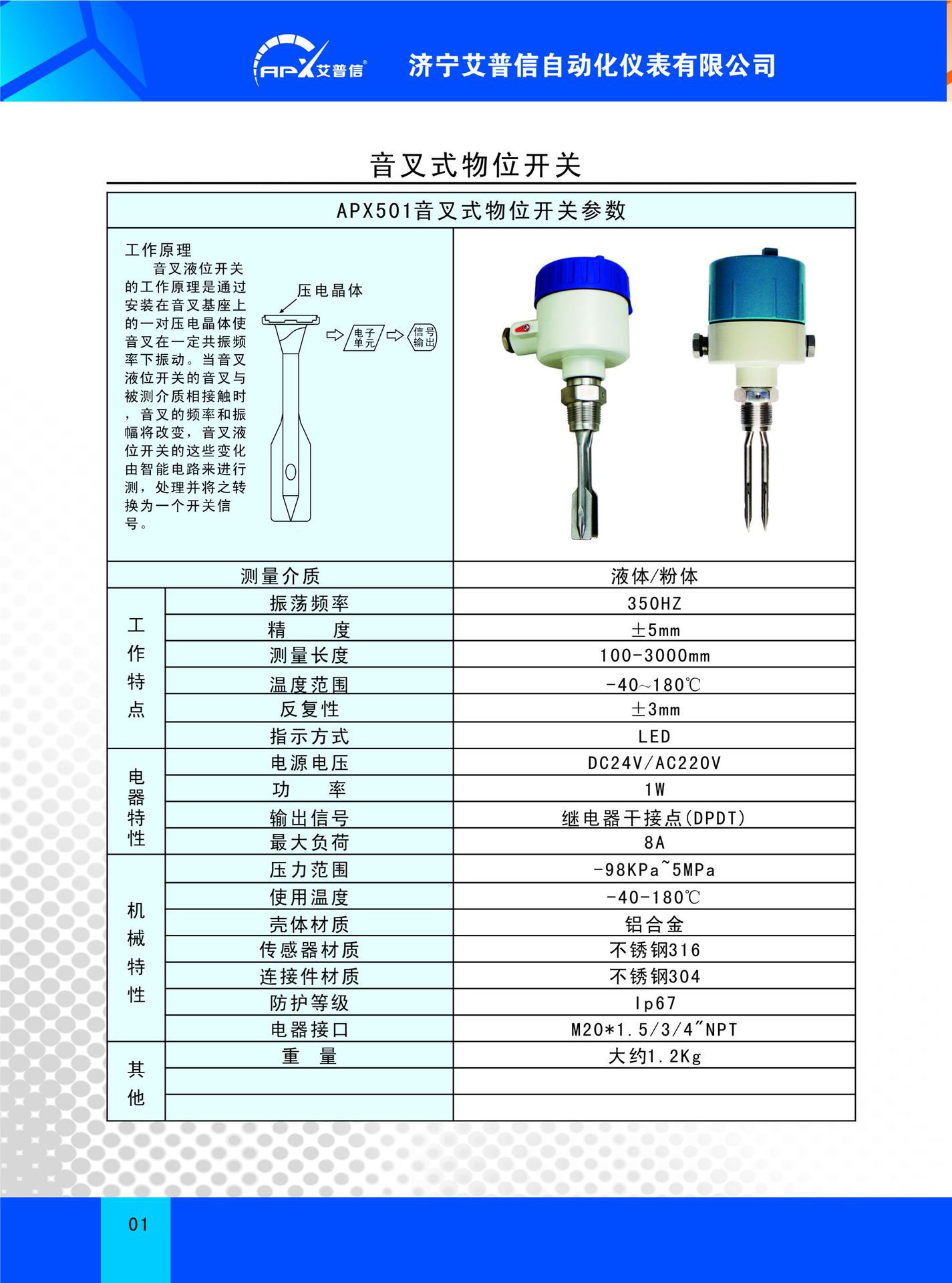 ?該產(chǎn)品可以對(duì)料罐的高低位進(jìn)行檢測(cè)、控制和報(bào)警,適用于各種液體、粉末、顆粒狀固體。它實(shí)用簡(jiǎn)單、運(yùn)行可靠、適用性強(qiáng)基本上是免維護(hù)的、音叉和輸出均有工作狀態(tài),均用發(fā)光二極管指示,可依據(jù)習(xí)慣調(diào)整狀態(tài)指示,并配有三種輸入方式(直流24V、交流110V和交流220V)和多種輸出方式(直流電流輸出型、繼電器接點(diǎn)輸出型、直流電壓輸出型)。所有類型均有高或低故障報(bào)警模式和可選擇的儀表開關(guān)靈敏度。