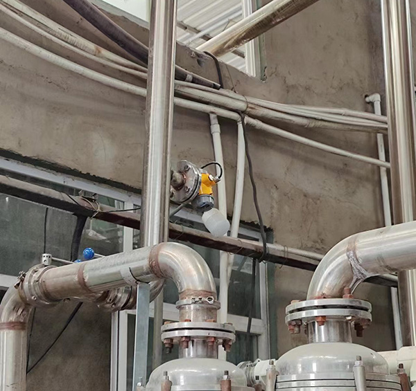 山東某化工廠應(yīng)客戶要求實(shí)時在線檢測超濾后二氧化硅溶液密度,經(jīng)技術(shù)分析指導(dǎo)在出液罐縱向管道合適位置開口安裝密度計,既方便觀察數(shù)據(jù),此處為介質(zhì)上升處又能大大減少了氣泡對檢測的影響,且介質(zhì)不易粘附叉體上。經(jīng)一周的現(xiàn)場使用觀察,測量精準(zhǔn)穩(wěn)定,能夠達(dá)到客戶現(xiàn)場應(yīng)用測量需求??蛻舴浅M意!預(yù)計劃安裝在多個新的生產(chǎn)線上,實(shí)現(xiàn)自動化生產(chǎn)測量控制。
